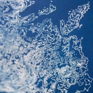 J’ai appris à réaliser mes propres cartes à partir des relevés topographiques, afin d’en faire quelque chose qui soit à la fois abstrait et esthétique, propre à chaque endroit. Le tout en restant exact d’un point de vue géographique. Privées de repères tels que les villes et les routes, les cartes sont une sorte d’empreinte digitale des lieux qu’on aime tant, et qu’on voudrait toujours garder près de nous.