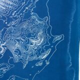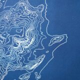 Tirage cyanotype d’une illustration réalisée à partir des relevés topographiques, sur papier aquarelle 300g. Il représente le massif des Pesquis, ainsi que le village de Bages, perché sur sa falaise, le tout grâce à ses courbes de niveaux.