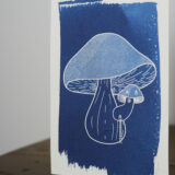 Tirage cyanotype d’une illustration, sur papier aquarelle 300g.