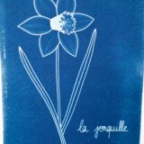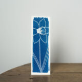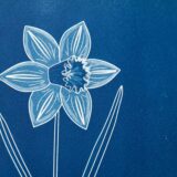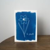 Tirage cyanotype d’une illustration de jonquille, sur papier aquarelle 300g.