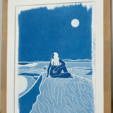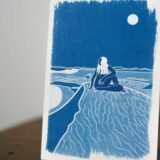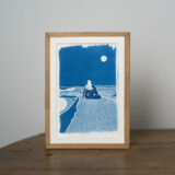Tirage cyanotype d’une illustration, sur papier aquarelle 300g.