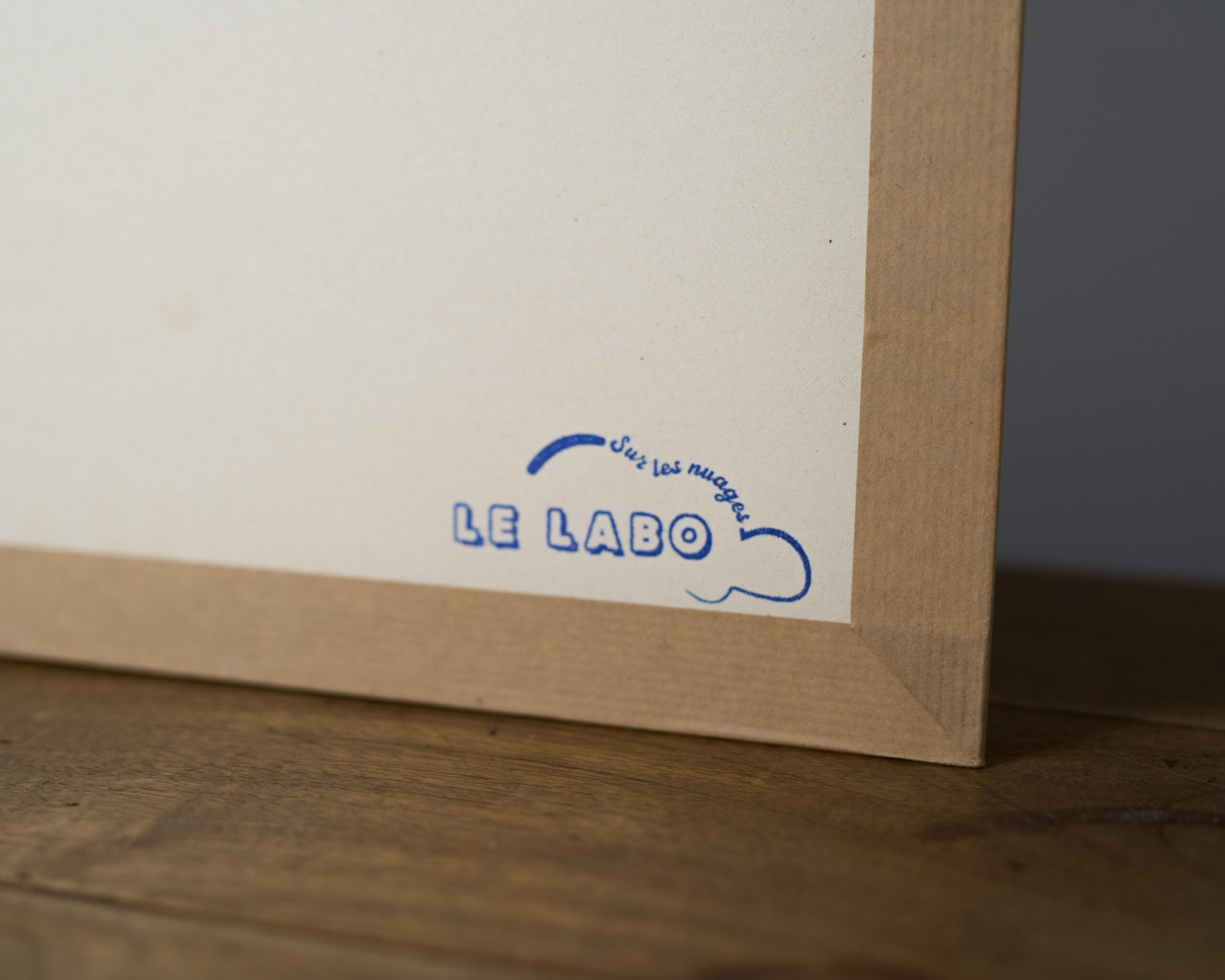 - Chaque tirage est fabriqué à la commande, et pressé à froid du petit nuage du LABO, à la fois comme signature et comme garantie d’authenticité et d’originalité du tirage.