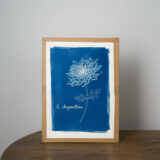 - Note également que mes encadrements ne sont pas sous verre, j’ai fais ce choix pour que tu puisses profiter pleinement du grain du papier et de l’intensité des bleus de ton cyanotype sans aucun reflet.