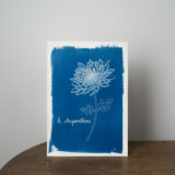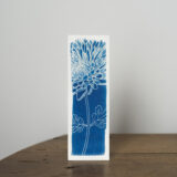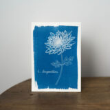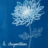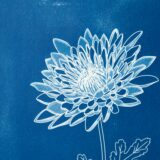 Tirage cyanotype d’une illustration de chrysanthème, sur papier aquarelle 300g.
