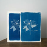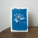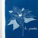 Tirage cyanotype d’une illustration de poinsettia (alias étoile de Noël), sur papier aquarelle 300g.