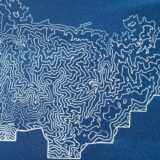 Tirage cyanotype d’une illustration réalisée à partir des relevés topographiques, sur papier aquarelle 300g. Il représente le massif du Vallespir, d’après ses courbes de niveaux.