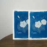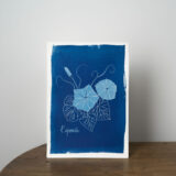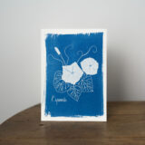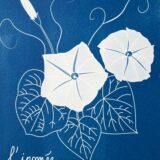 Tirage cyanotype d’une illustration d’ipomée, sur papier aquarelle 300g.