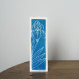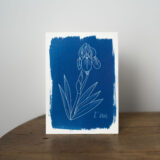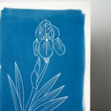 Tirage cyanotype d’une illustration d’iris, sur papier aquarelle 300g.
