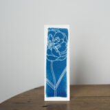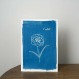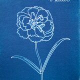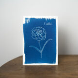 Tirage cyanotype d’une illustration d’œillet, sur papier aquarelle 300g.