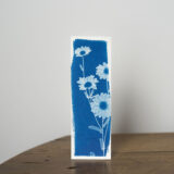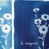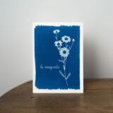 Tirage cyanotype d’une illustration de marguerite, sur papier aquarelle 300g.
